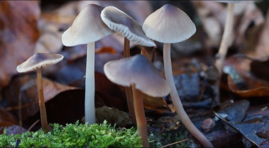 Naja, also sicher bin ich natürlich trotzdem nicht, denn die von mir anvisierte Mycena polygramma (Rillstieliger Helmling) hat im Normalfall auffällig graue Stiele und einen recht stabilen Fruchtkörperwuchs, vergleichbar beinahe (nicht ganz) mit Mycena galericulata (Rosablättriger Helmling).