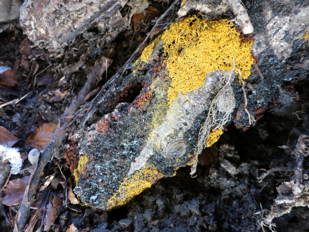 Schleimpilze: (Hemitrichia serpula) mit Metatrichia vesparium? auf Esche: