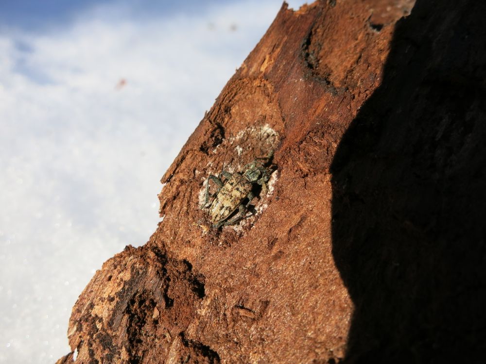 Obwohl... Bei dem Wetter bei uns zur Zeit sind auch schon wieder etliche Insekten aktiv. Und wenn's wieder friert, dann müssen die rasch ein neues Versteck auftreiben.