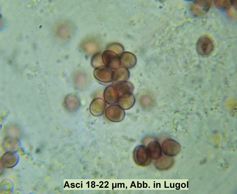 Kernia cauquensis hatte ich ja schon. Diese hier, wenn es denn eine Kernia ist, hat konsequent 8 Sporen im Ascus, die zudem auch größer und anders geformt sind als bei K.cauquensis.
