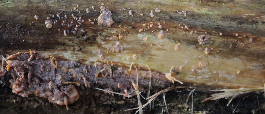 Den anderen hast du deswegen photographiert, weil es ein sehr hübscher Pilz ist, dem du noch sehr oft begegnen wirst. Nämlich der Orangerote Kammpilz (Phlebia radiata).