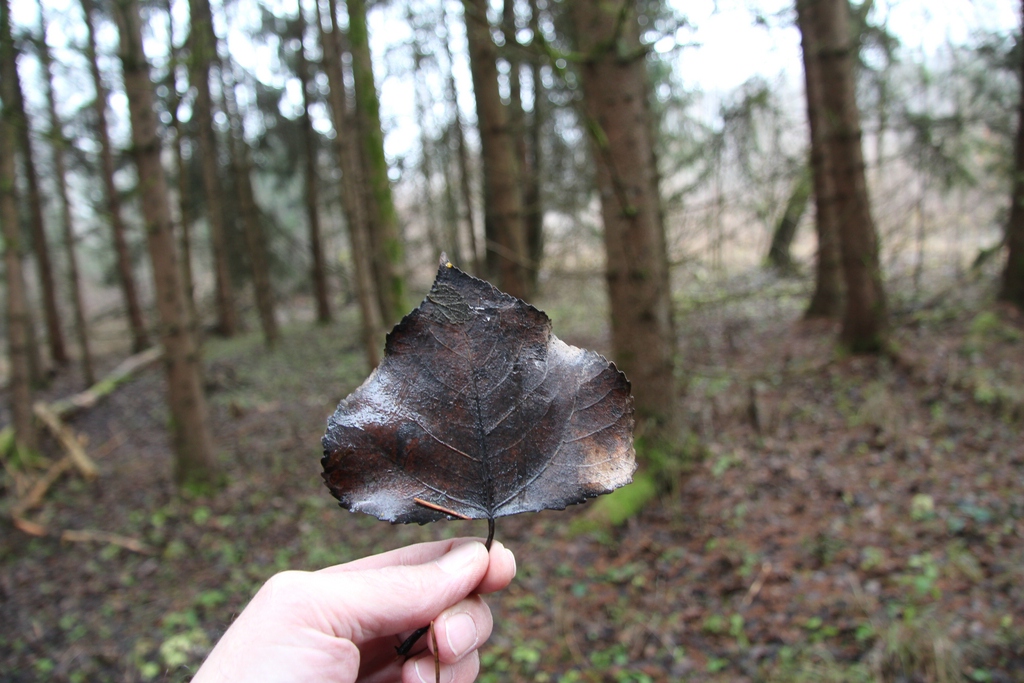 Ein Blick auf den Boden, Blätter und Nadeln. Der liegende ist der Bruder von stehenden ;)
