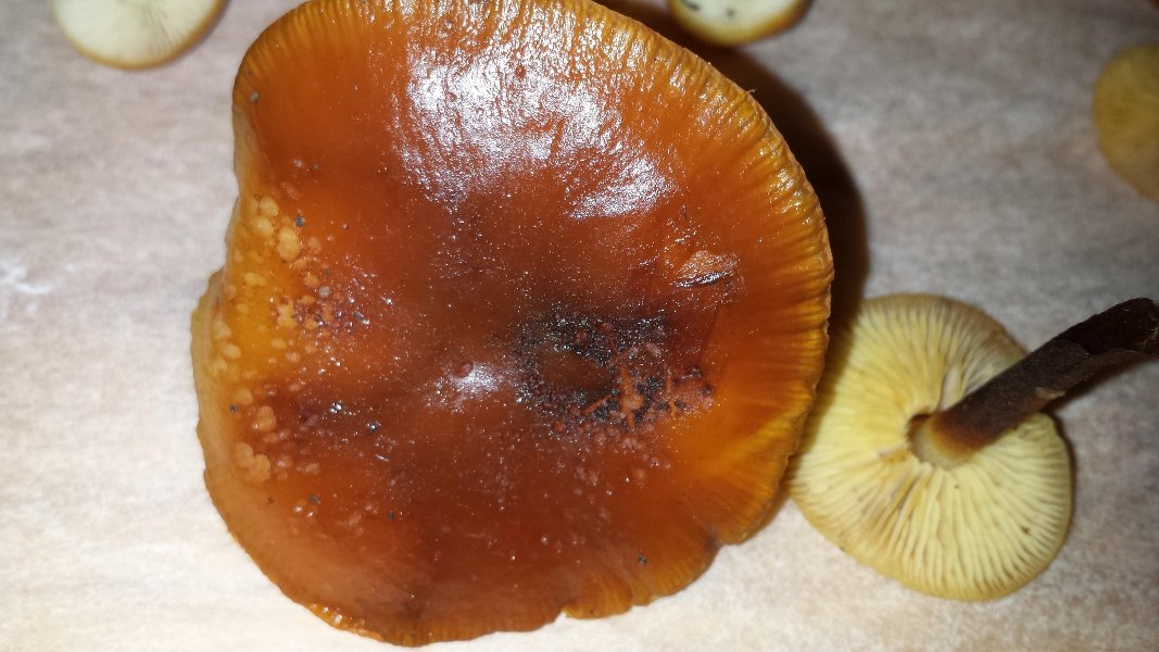 Ich weiß dass es ein Buchenstamm war. Größe Pilz: 7-10 Zentimeter. Kann man Rückschlüsse ziehen anhand der "Oberhaut" ? Deshalb hatte ich ja den daneben gelegt (Bild 4).Bild 5: So wird man angelockt.