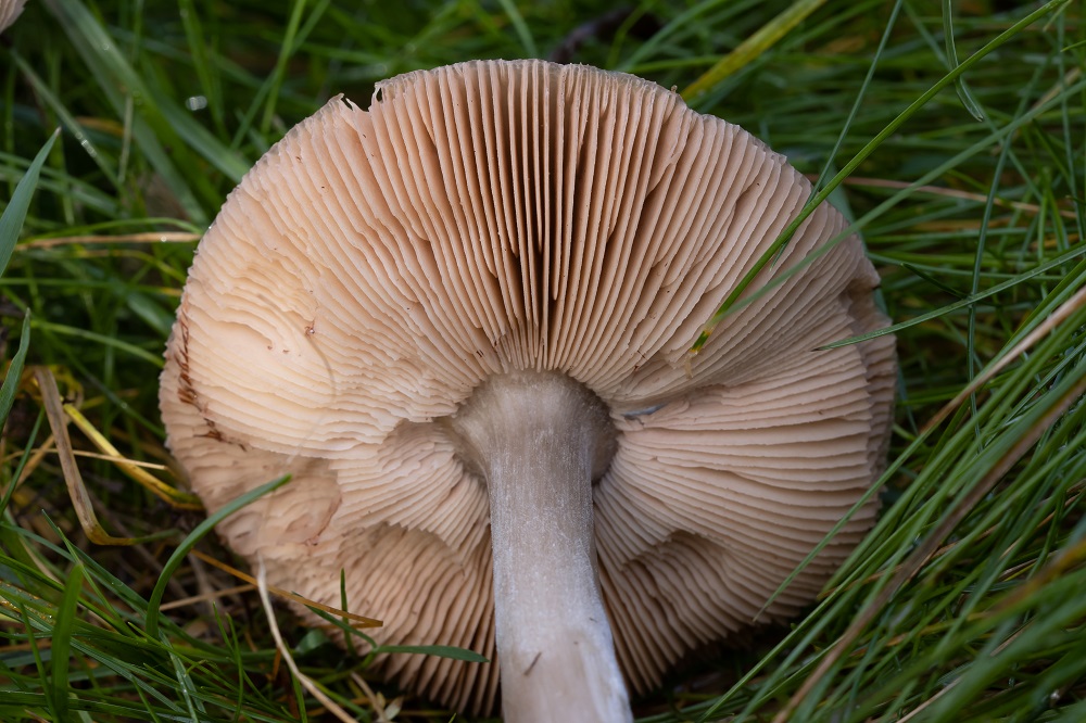 Lamellen: Jung weiß, später rosa, sehr dicht gedrängt und frei stehend.