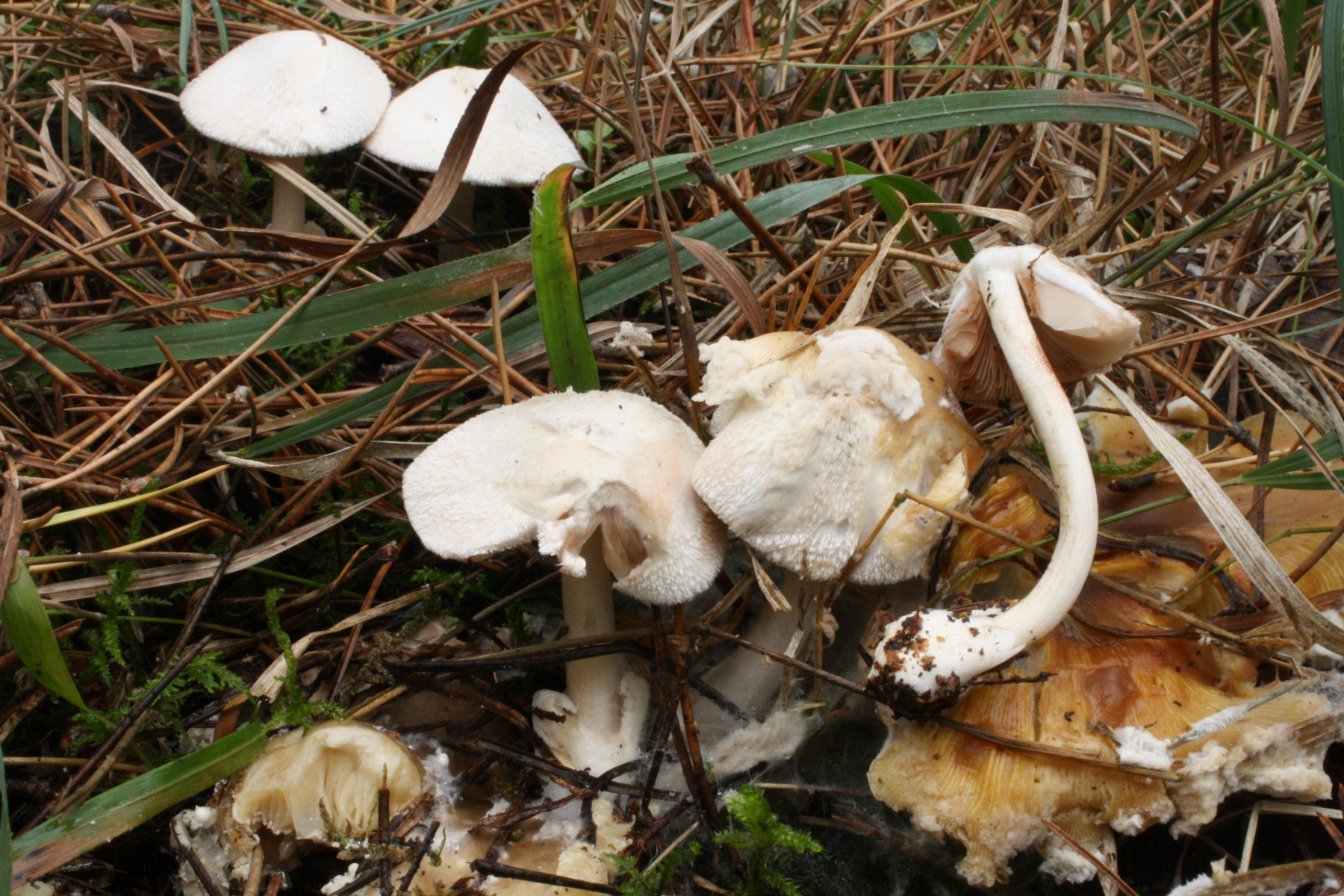 Stiel: 2-7cm lang und 1mm breit Zylindrisch aber oft verbogen (Substrat bedingt) und steckt an der Basis in eine weiße Volva.