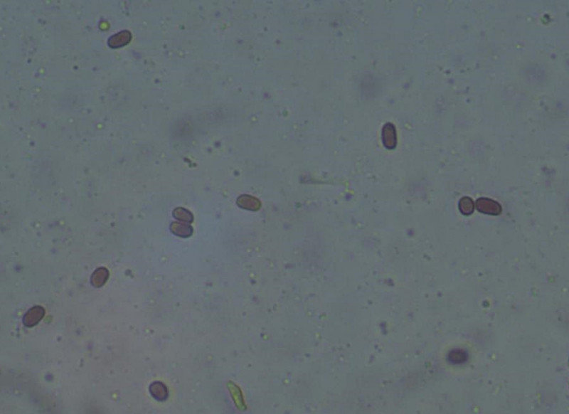 es könnte sich bei diesem Fund tatsächlich um Parmastomyces mollisimus handeln. Der Unterschied zur Gattung Oligoporus sind die leicht dickwandigen, dextrinoiden Sporen (siehe Foto). Auf deinen Fotos kann ich zumindest keine allantoiden Sporen entdecken, die für Oligoporus fragilis sprechen würden.