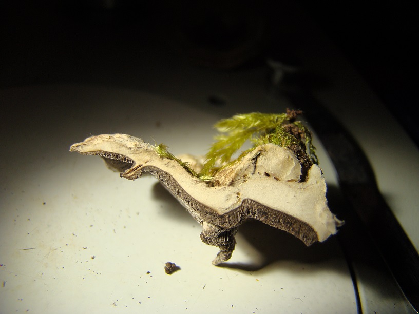 Einzelner Fruchtkörper 3-7 cm breit, bis ca. 4 cm vom Substrat abstehend, dünn (2-6 mm dick), weich und biegsam wenn feucht. Bisher habe ich oft junge kleinere Exemplare gefunden.