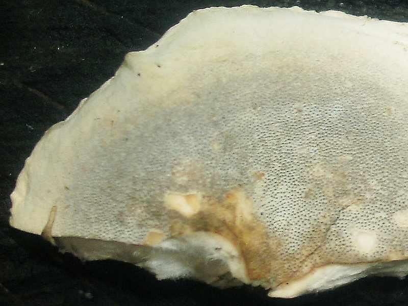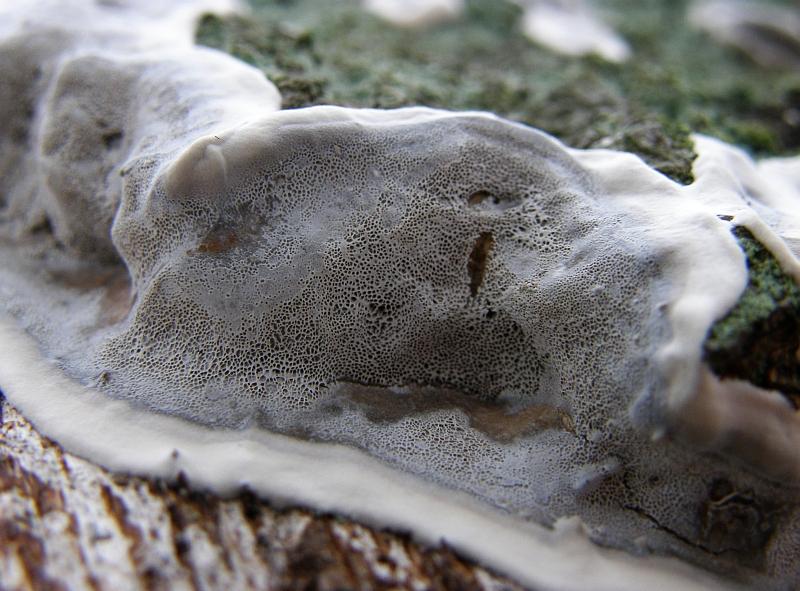 Poren: Unterseite sehr feinporig (4-6 Poren pro mm), jung hell mit grauem Schimmer, bei Berührung, Kratzen und bei älteren Pilzen oder Lagerung/ Trocknung deutlich schwärzend