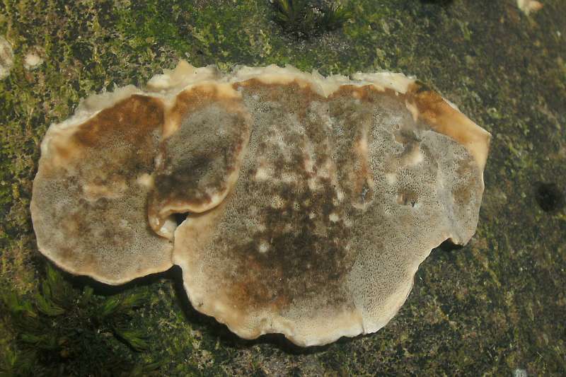 Fruchtkörper: jung und an der Unterseite von Ästen u. Stämmen teilweise resupinat wachsend und nur kleine Hutkanten ausbildend, an senkrechten Substraten halbkreisförmig wachsend, oft dachziegelartig geschichtet und miteinander reihig verwachsen.
