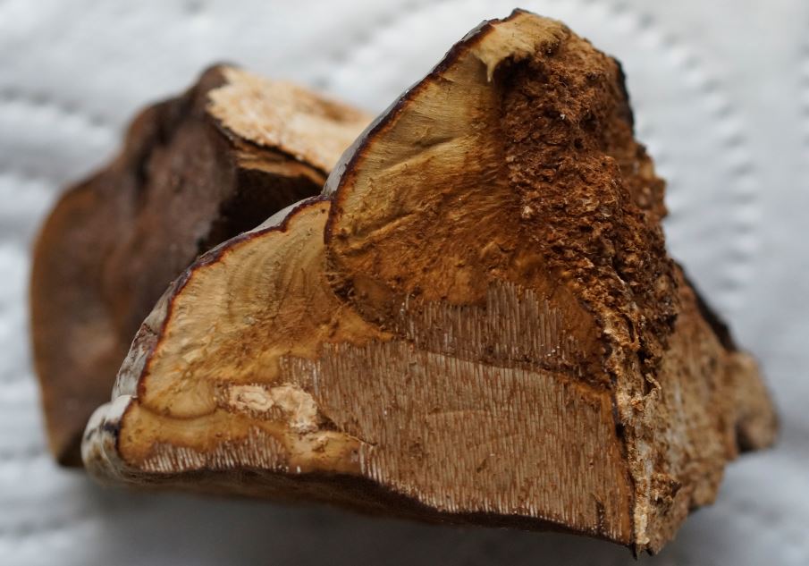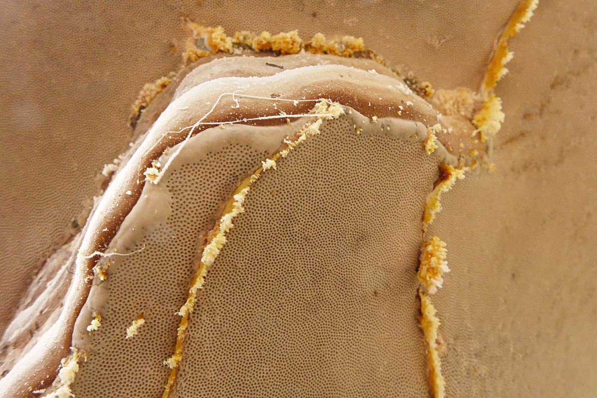 Tatsächlich kann übrigens die gesamte Trama (Hutfleisch) für die Zunderherstellung verwendet werden, ich habe deswegen auch ein Schnittbild mit eingestellt und dachte, man erkennt die einzelnen Teile des FK. Die Randschicht ("Kruste"), der Myzelialkern (Anwuchsstelle) und die Porenschicht müssen vom FK entfernt werden. Dann bleibt das eigentliche Pilzfleisch (Trama) übrig, welches für die Zunderherstellung verwendet wird.