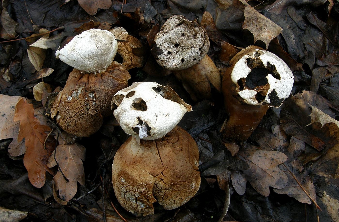 Endoperidie meist flach kugelig; bis 5 cm breit; blassbraun bis silbrig; mit diversen, unregelmäßig geformten und angeordneten Öffnungen, ohne regelmäßiges Peristom; der Exoperidie mit mehreren, kurzen Stielen aufsitzend