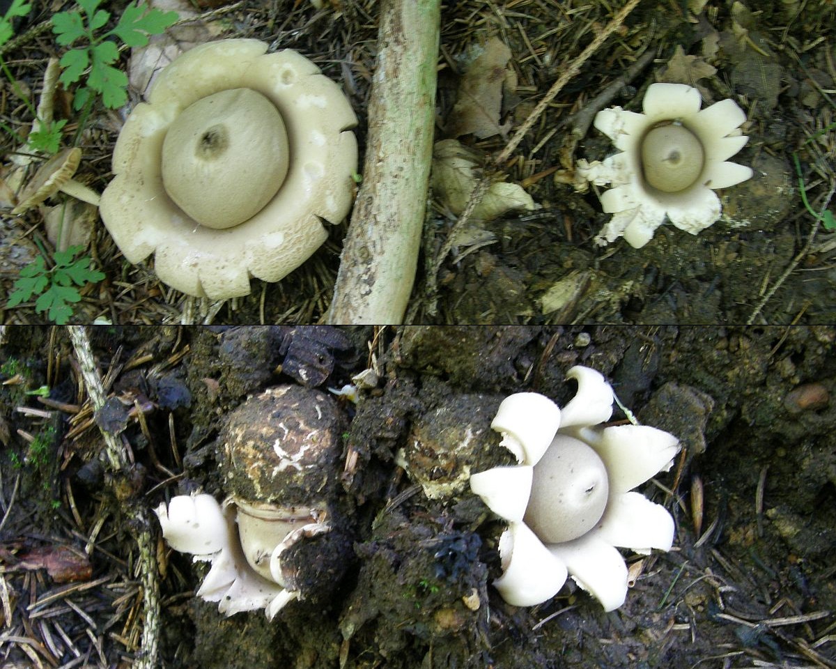 Der Blumen –“ Erdstern (Geastrum floriforme) hat meistens eine Exoperidie mit mehr Lappen, die zudem hygroskpisch ist (rollt sich bei Trockenheit nach innen, die Endoperidie umhüllend)