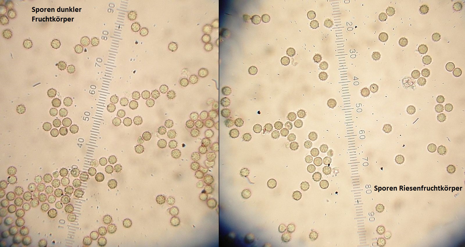Sporenpulver: dunkelbraun, Sporen kugelig, feinwarzig, 2,5 bis 3,5 µm