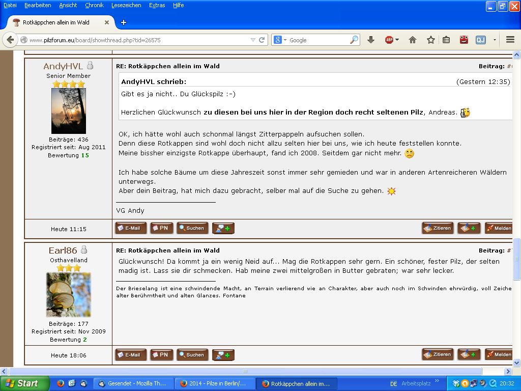 ..hab ich mich heute nach der Nachtschicht, auf die Suche nach der Espen-Rotkappe gemacht.