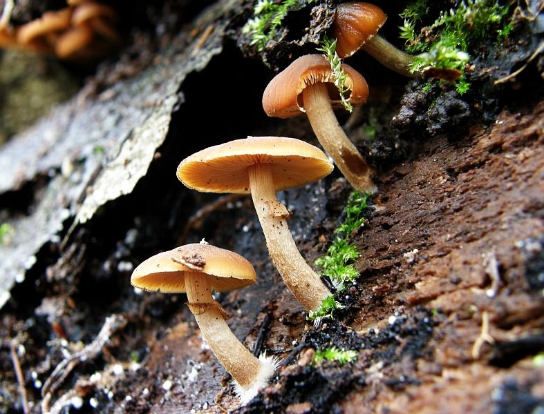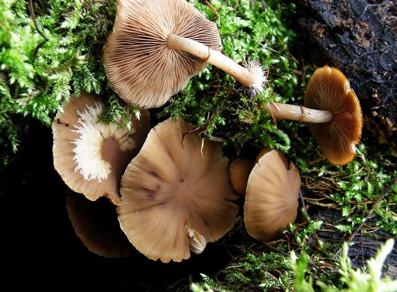 Die wuchsen alle an einem finalmorschen, modrigen Laubholzstamm von großer Dicke. Zusammen mit Winterhelmlingen, Flachen Lackporlingen und Dasyscyphella cf. nivea.