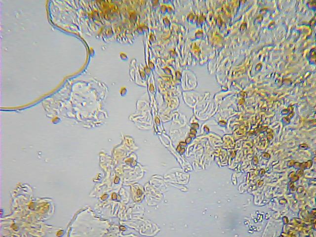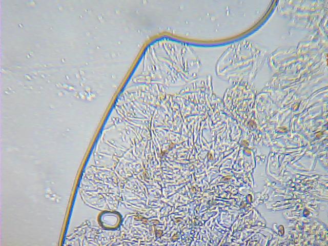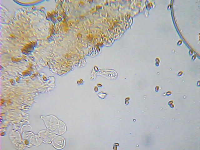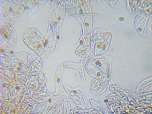 Und das in der Bildmitte wird doch nicht etwa eine herausgequetschte Cheilocystide sein?