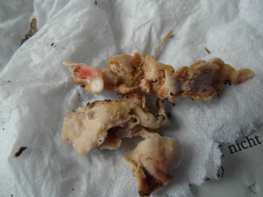 Wenn es eine Antrodiella ist (was ich immer noch vermute) wird die Bestimmung kritisch. Fast alle Arten dieser Gattung wachsen auf oder nach anderen Porlingen und die Bestimmung ist davon auch mit abhängig, da die mikroskopischen und makroskopischen Unterschiede relativ gering sind.