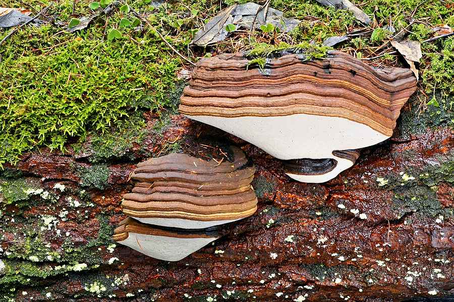 Beim ersten Link dachte ich spontan: Oben Zunderschwamm, unten Lackporlinge. Das hat sich ja auch im Text unterm Bild bestätigt.