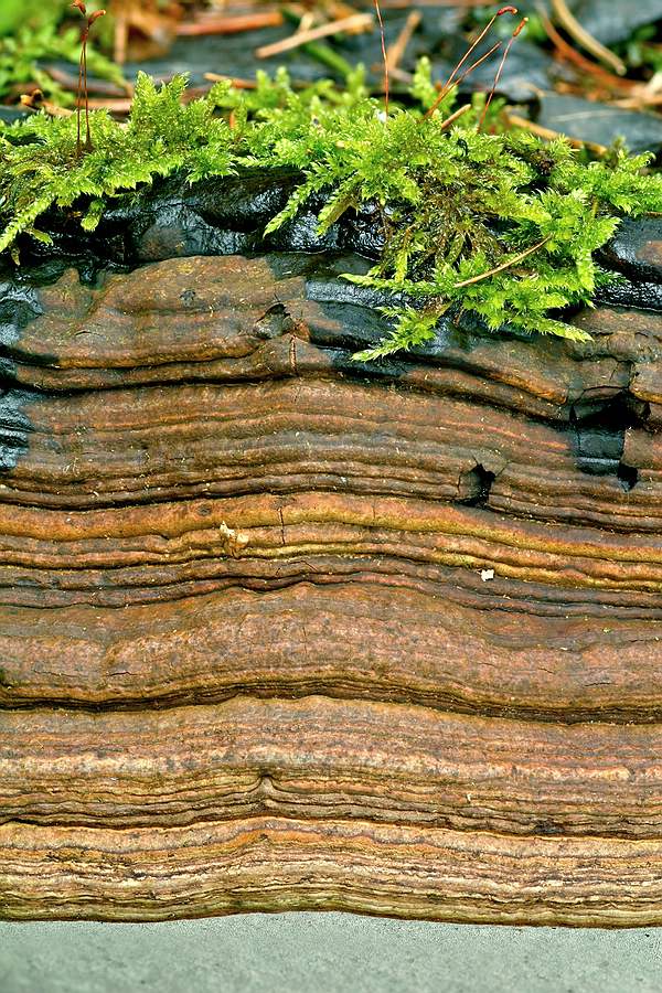 Hier ein Beispiel aus meinem eigenen Fundus: mehrschichtiger Aufbau , eingedrückte Stellen, sogar bemoost wie der hier vorgestellte Pilz!