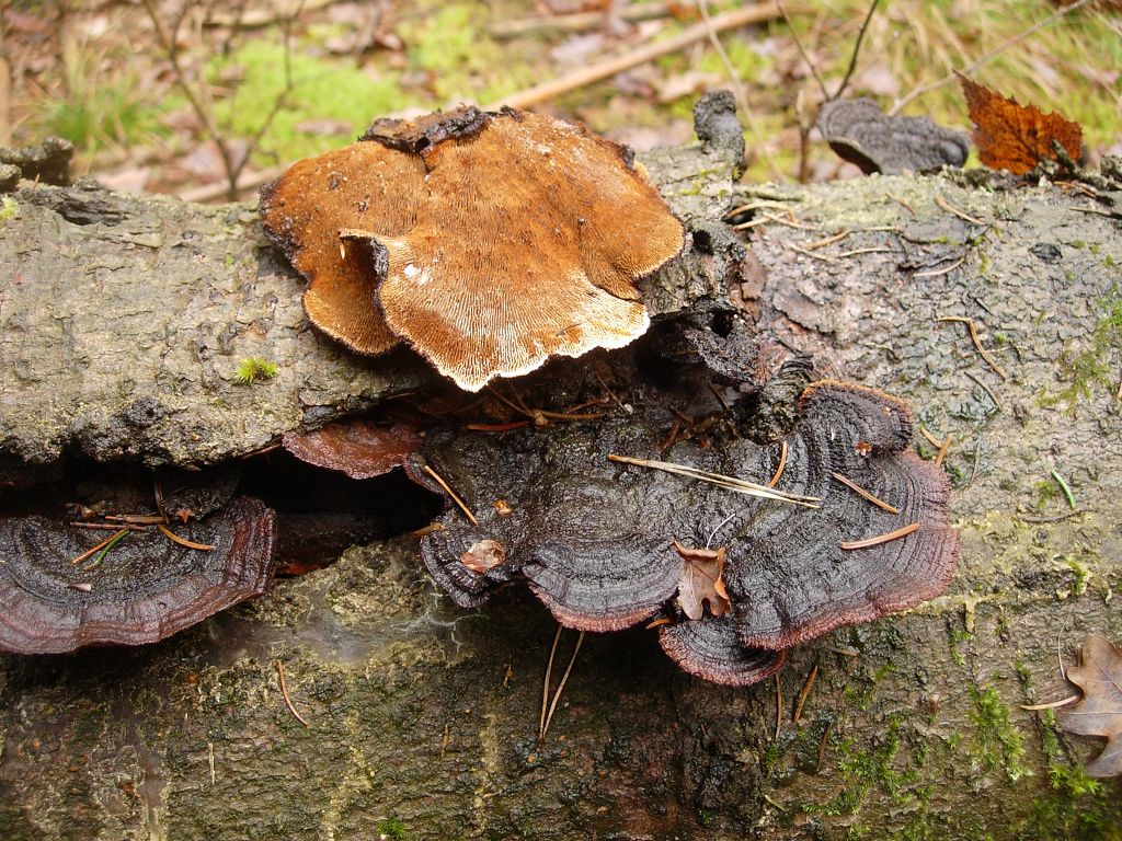 An einer liegenden Fichte habe ich heute diese drei verschiedenen Gloeophyllumformen gefunden. Ich finde es gar nicht so einfach sie zu bestimmen.