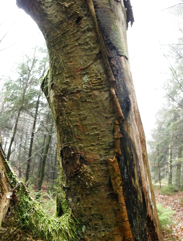 Odenwald, Umgebung Weißer Stein, Höhenlage (ca. 450m), Mischwald (v.A. Fichten, Birken, Buchen), recht feuchter Standort, bodensauer