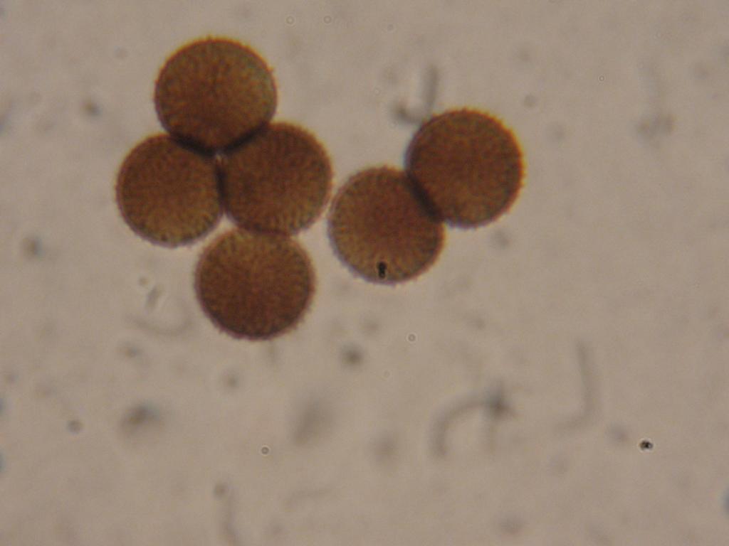 hier hätte ich noch ein Sporenbild "vergrössert" als Draufgabe, vielleicht hilft`s bei der Bestimmung.