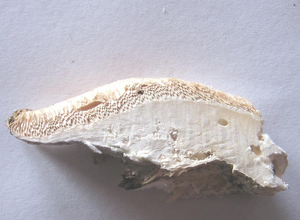 Das spricht gegen T. pubescens. Die hätte ein eher bröckelig - wattiges Fleisch, alt und trocken auch etwas korkig, sofern sie nicht von innen her aufgefressen wird (ist sehr anfällig für Parasiten).