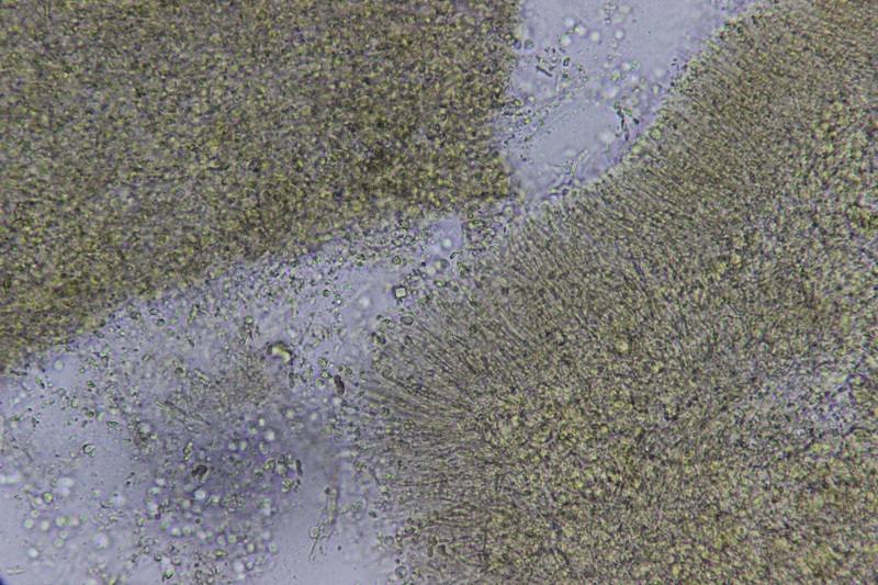 400fach vergrößert: Ich habe außer diesen hier keine Strukturen erkennen können, die in Richtung Ascis oder Paraphysen gehen.