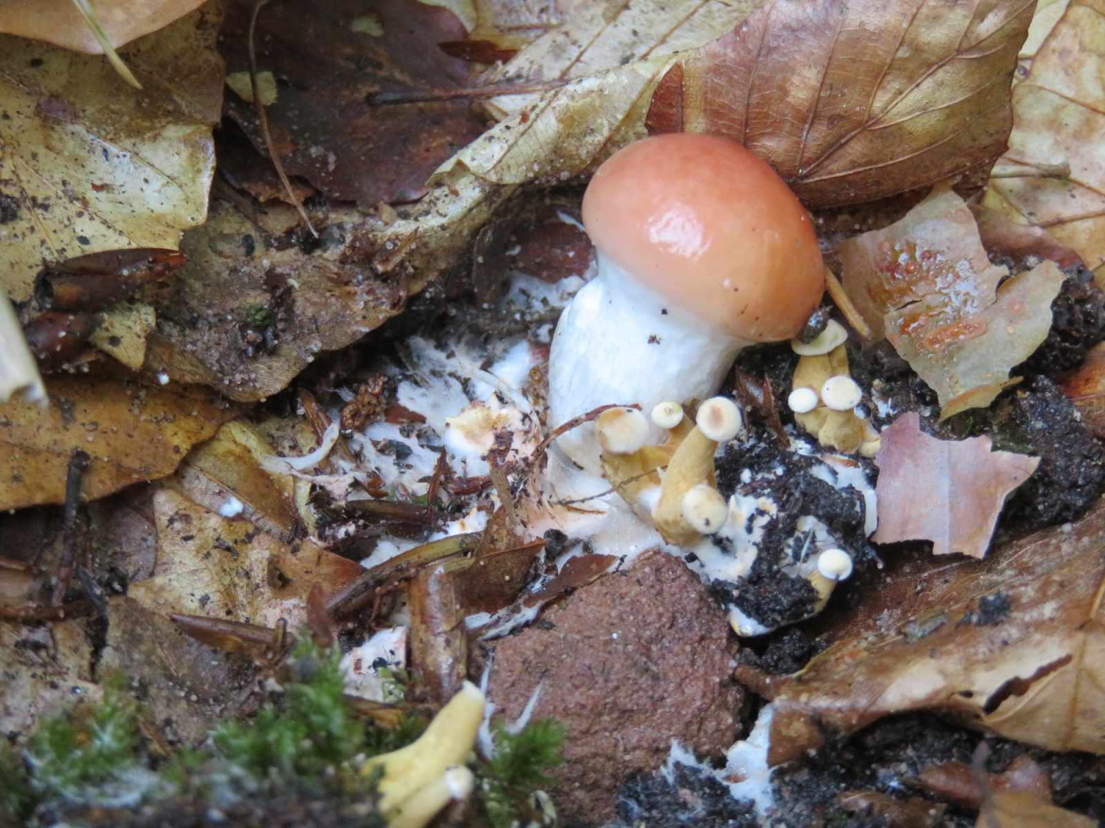 Und einmal zusammen mit dem Rosenroten Schmierling (Gomphidius roseus), der nur in Verbindung mit Kuhrröhrlingen wächst, allerdings nur sehr selten ist: