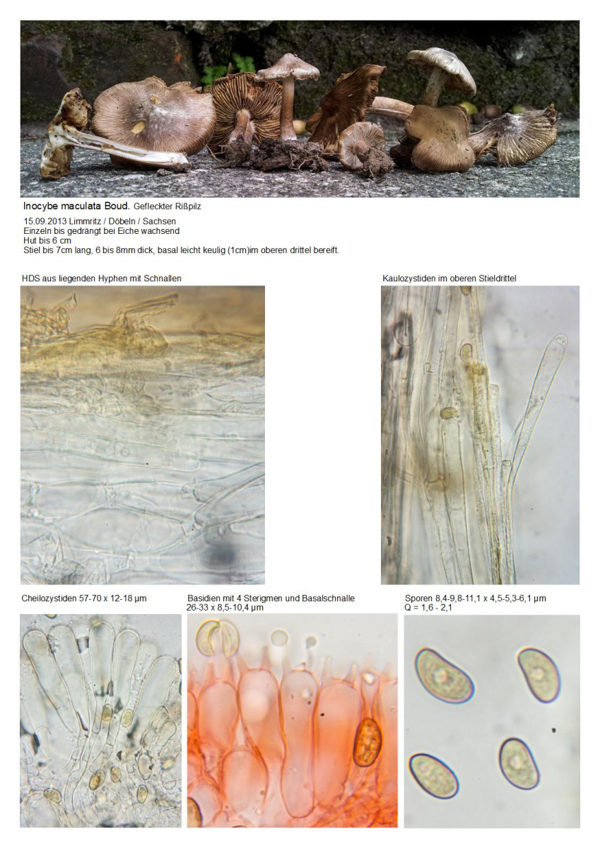 Inocybe maculata Boud. Gefleckter Rißpilz Keine Synonyme in Mycobank Classification: Fungi, Basidiomycota, Agaricomycotina, Agaricomycetes, Agaricomycetidae, Agaricales, Cortinariaceae, Inocybe Verwendung: giftig Mfg Sven