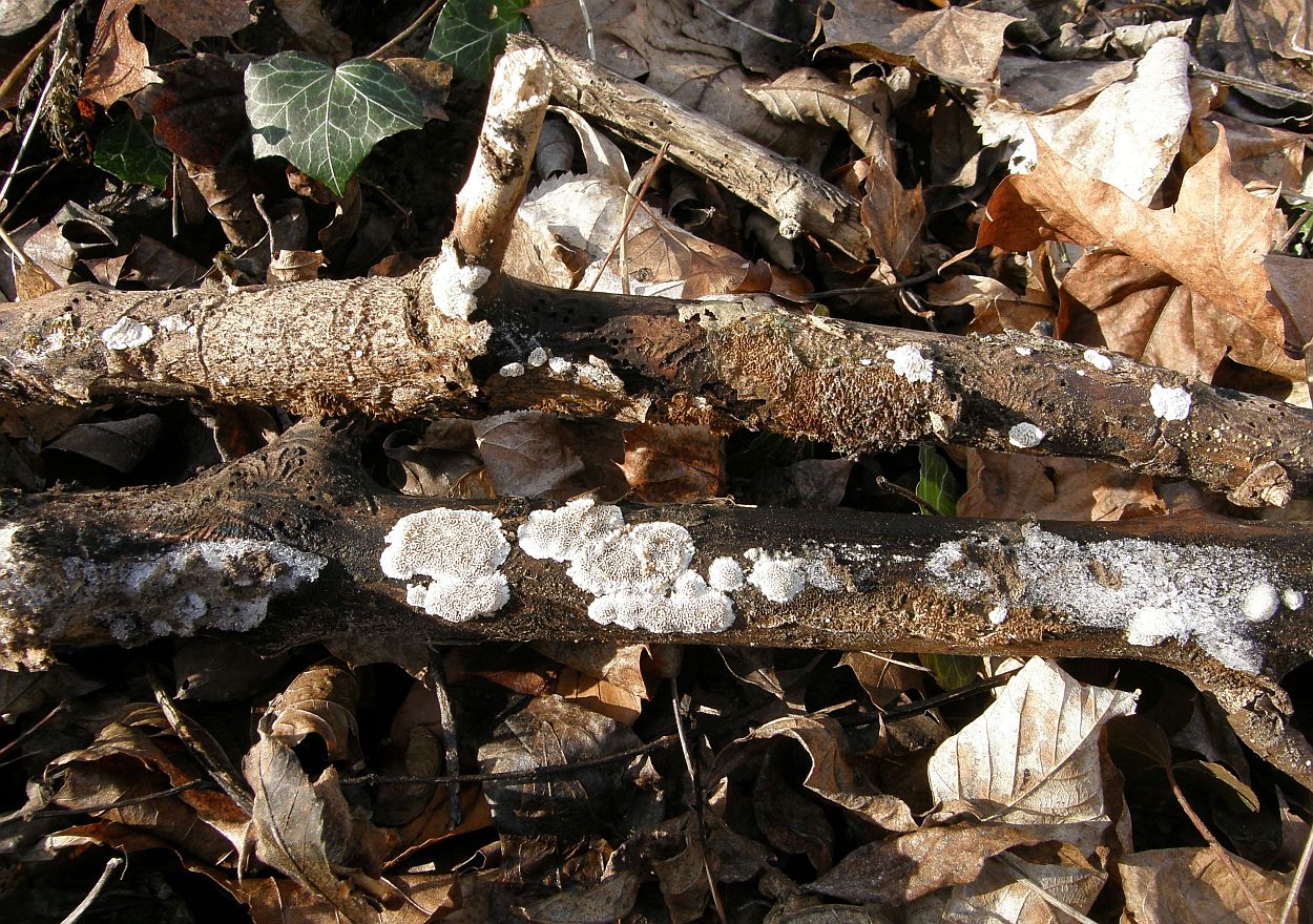 Irpex lacteus M00046 (Herbarium bwergen), A-1100 Wien 30.XII.2013, an Ailanthus altissimus, leg. R. Moosbeckhofer, det. bwergen
