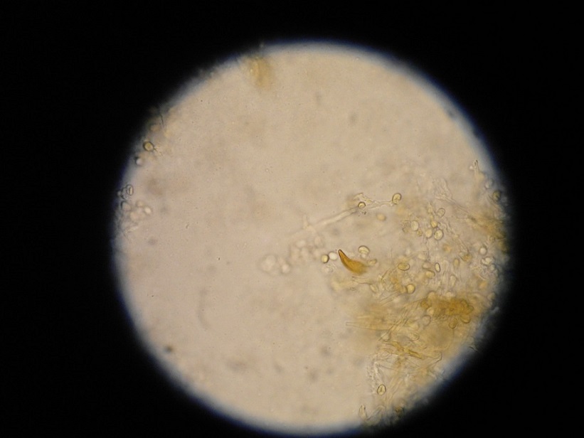 Ein Porling an Schwarz-Erle, gefunden an einem Seeufer. Ziemlich rasch dachte ich an I. radiatus, was ich mikroskopisch versuchte zu bestätigen. Setae habe ich nur sehr wenige gefunden, viel weniger als bisher bei anderen Schillerporlingen. Diese waren dann meist nur schwach gebogen, keinesfalls so stark wie in Pilze der Schweiz dargestellt. Kann das dennoch I. radiatus sein? Ist es womöglich sogar typisch für diese Art, dass sie nur sehr wenige Setae aufweist? Die Setae messen durchschnittlich 20 x 6 my. Ähnlich stelle ich mir noch Phellinus conchatus vor, der jedoch auf Weidenarten vorkommen soll.
