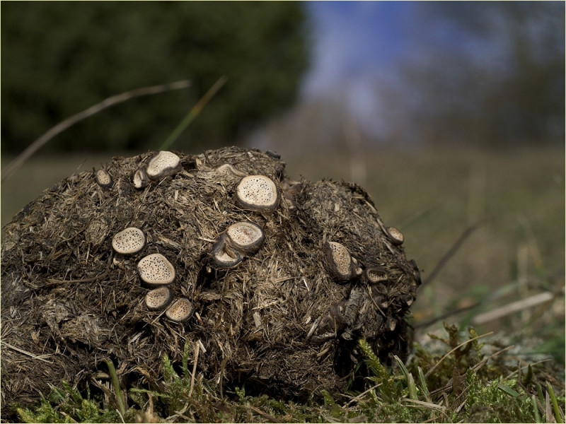 dem Tip eines Pilzfreunds folgend, durfte ich heute Punktierte Porenscheiben, Poronia punctata fotografieren.