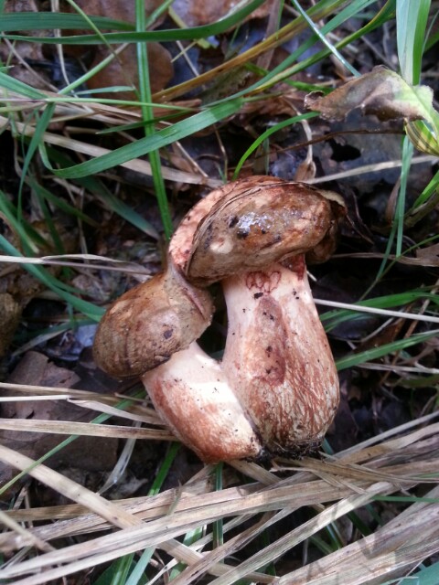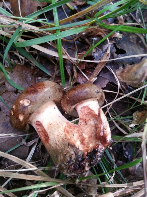 Bei diesem Pilz handelt sich mit grosser Wahrscheinlichkeit um einen Schleierling, einverstanden? Und er verhält sich bei Verletzungen ähnlich wie ein Perlpilz....