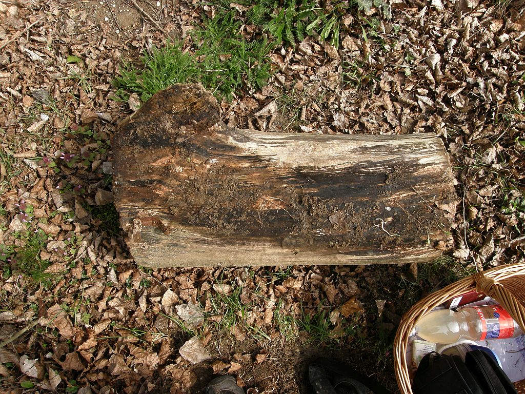 liegendes Stammstück, Laubholz (Pappel), unterseits wachsend;