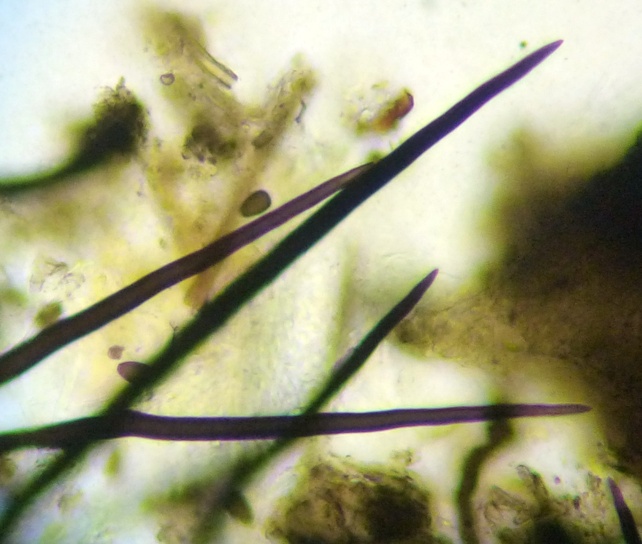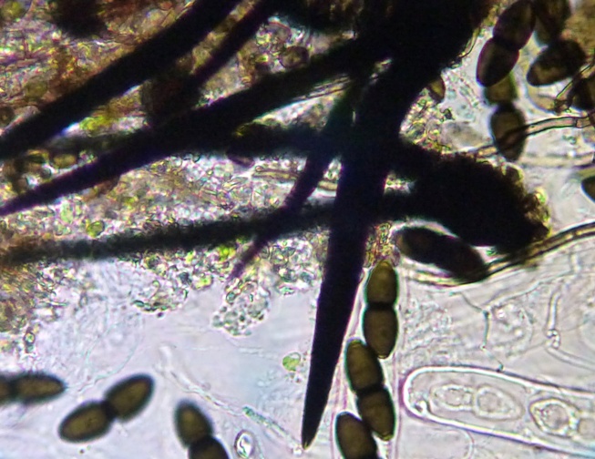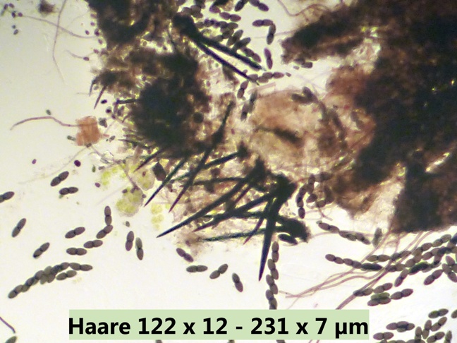 Bei der allabendlichen Durchsicht der Rehkuddeln fiel mir unter den vielen normalen Trichodelitschia ein fast doppelt so großes Perithecium mit ungewöhnlich dicken Haaren auf.
