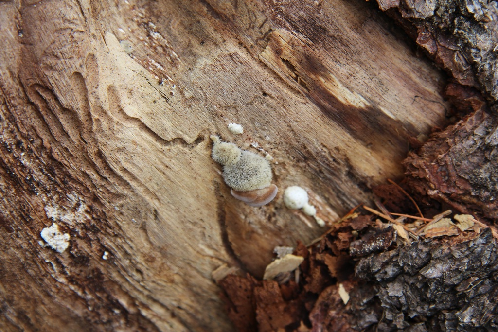 Größe ca. 5mm, das ginge Richtung Trametes hirsuta...