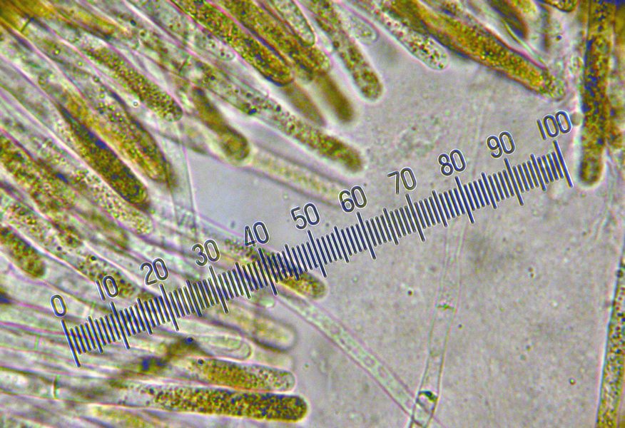 Um die von dir vermutete Peziza nachzuweisen, müsstest du die Asci mit Lugol traktieren und dann unterm Mikroskop eine Blauverfärbung der Ascusspitzen beobachten - was aber hier wohl nicht passieren dürfte.