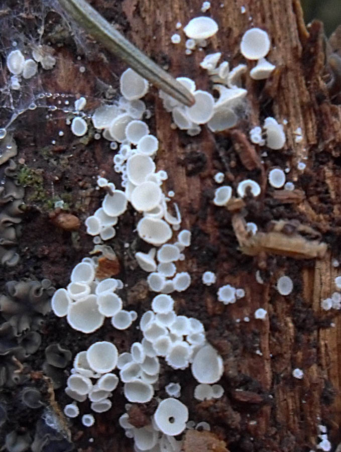 Bei den "kleinen weißen Becherchen" denke ich an 2 Arten.