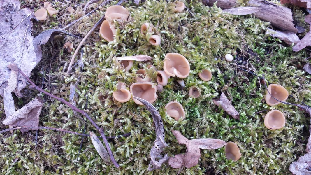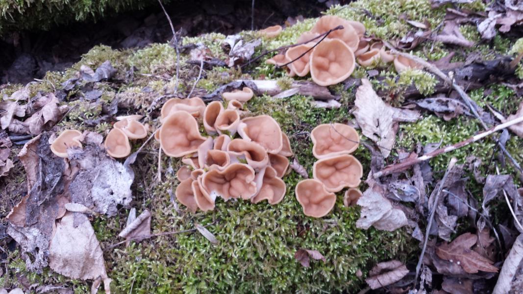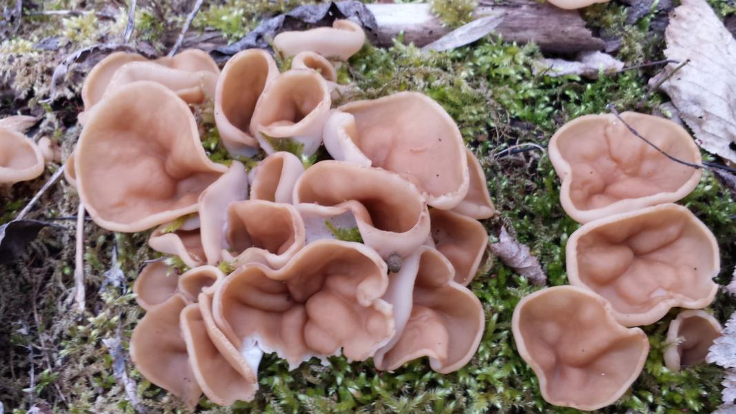 aber als ich bei meinen morschen baumstämmen vorbeischaute, freute ich mich doch über die ersten Gyromitra parma, Syn. Discina parma.
