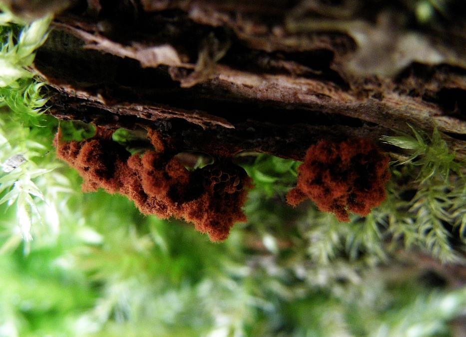 Das Weiße Drumherum sind doch Schimmelfäden hier, odr?"Wespennestschleimi (Metatrichia cf vesparium"