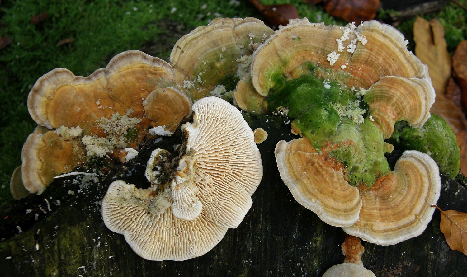 Lenzites betulina an Picea abies, zwei mal aus Oberitalien, Alpensüdrand, April 2015 und Dezember 2015.