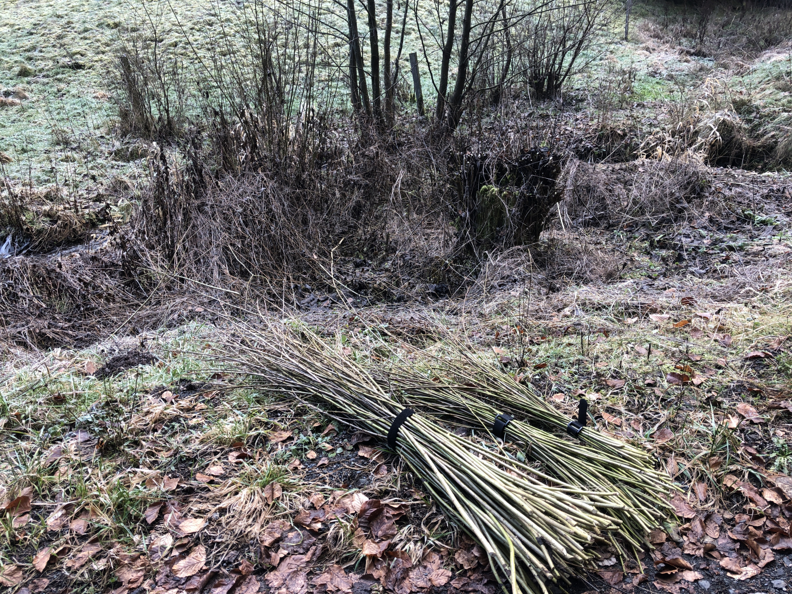 Und es gibt noch eine andere Weidenart mit viel dünneren Trieben, die ich gern ausprobieren würde. Aber das ist auf einer städtischen Grünfläche. Da muss ich wohl warten, bis meine Stecklinge davon irgendwann groß genug sind.