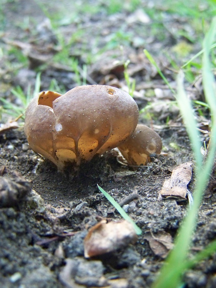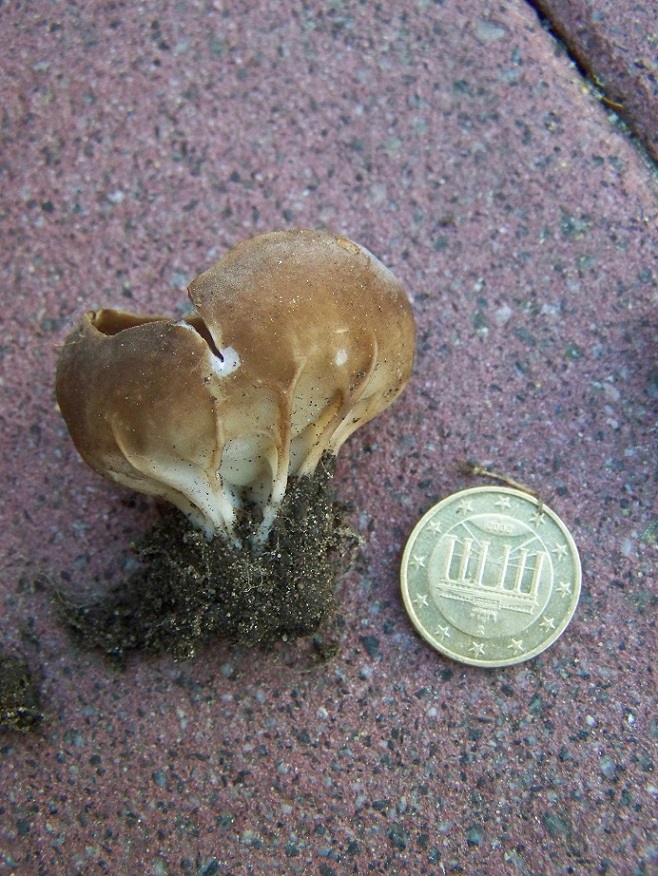 - Vermutung: Ich gehe wegen der Farbe und Größe davon aus, dass es sich um die Gattung Peziza handelt, aber da wird wohl nichts ohne Mikroskop gehen, oder?