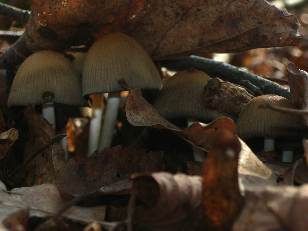 Die Suche nach den Tulpenbecherlingen verlief ohne Erfolg. Dafür hat Toffel viele schwarze Beläge auf Baumstümpfen und anderes schwarzes Pyrenomycetenzeug eingesammelt. Enno hat in der Zwischenzeit Glimmertintlinge gefunden.