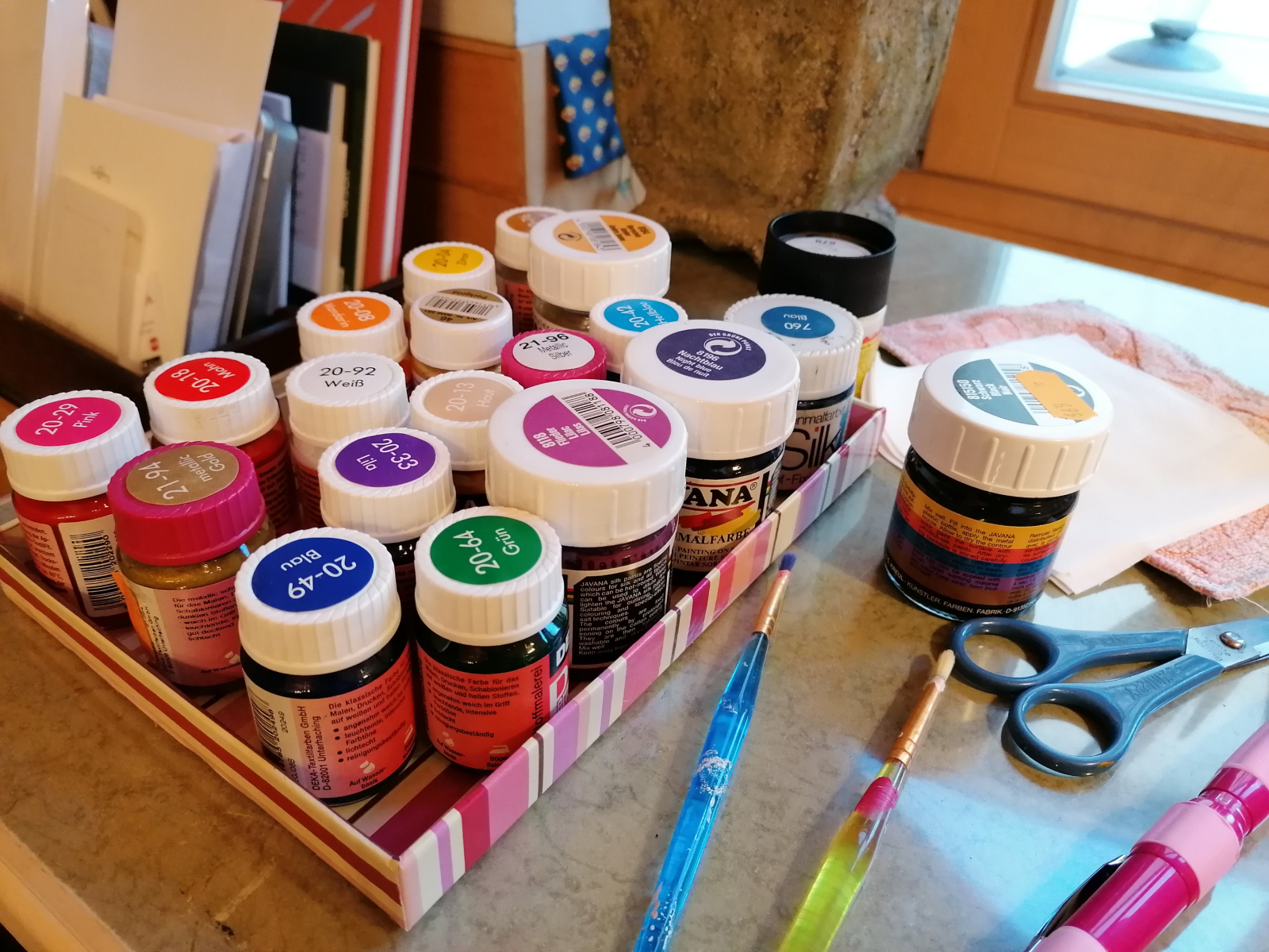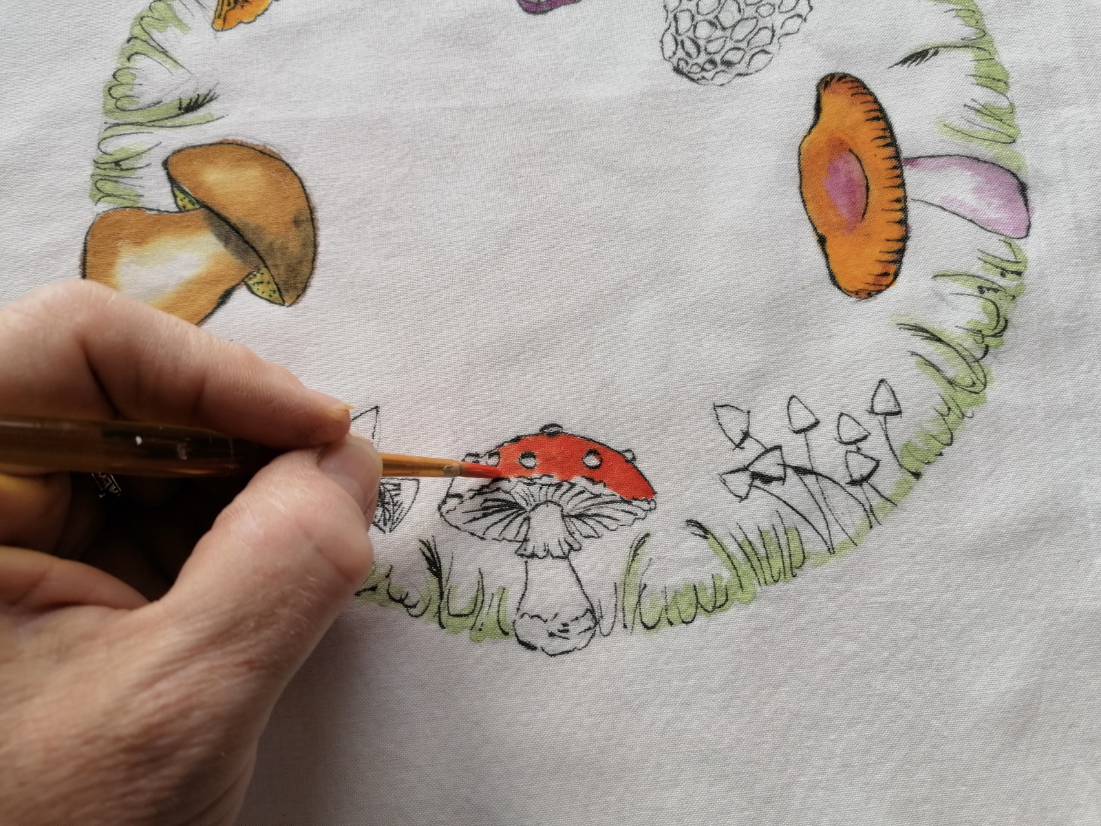 03. Dann beginne ich, mit Stoffmalfarben zu colorieren.
