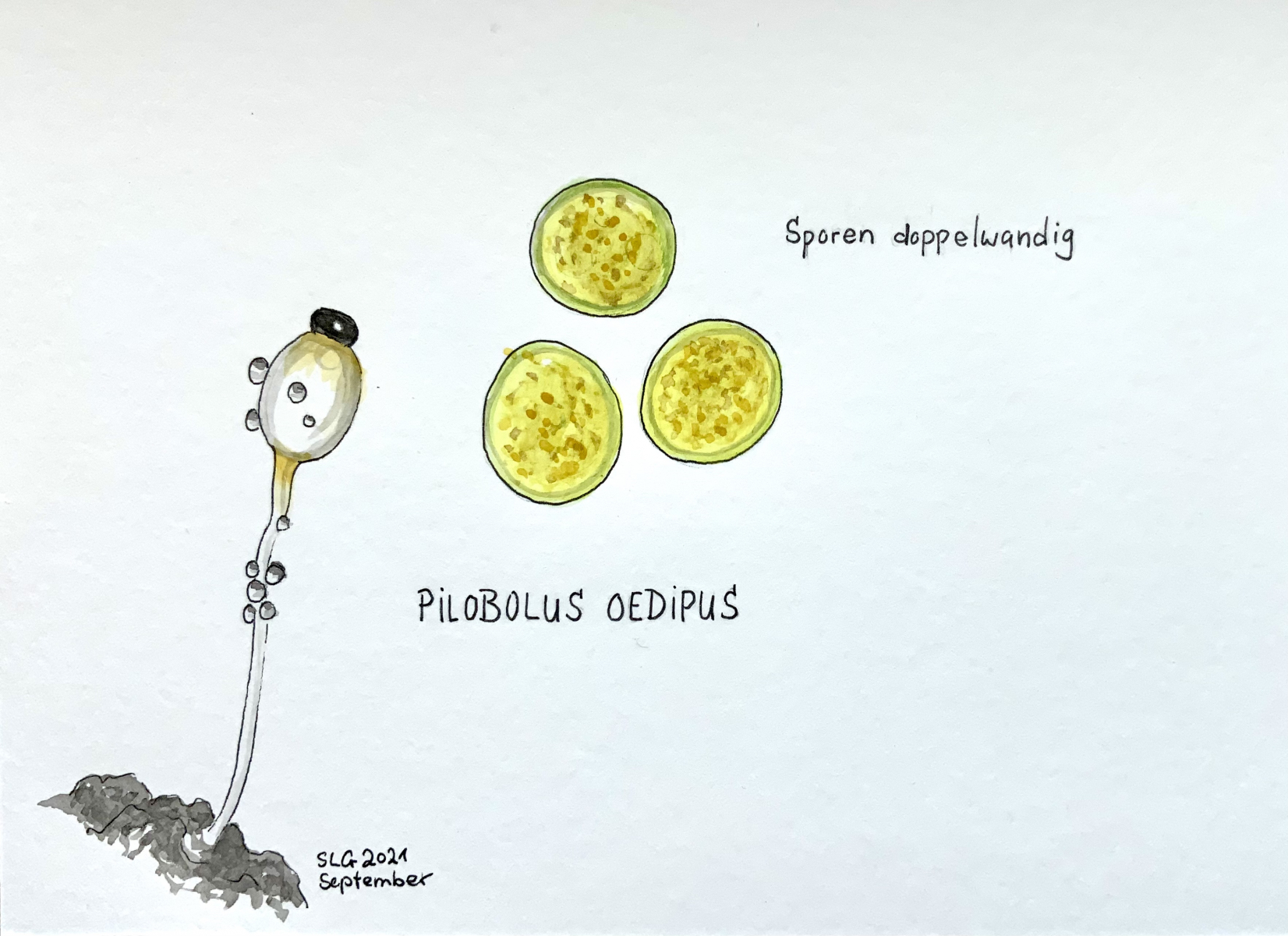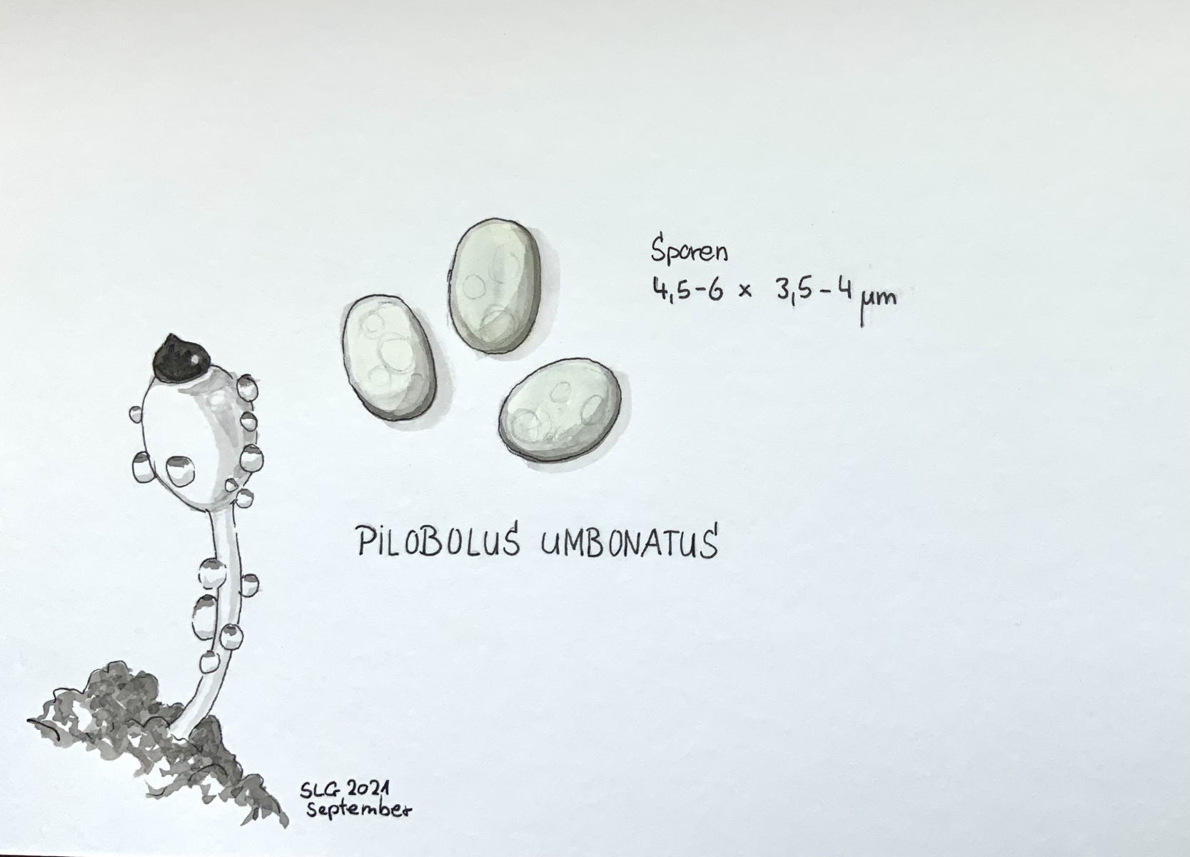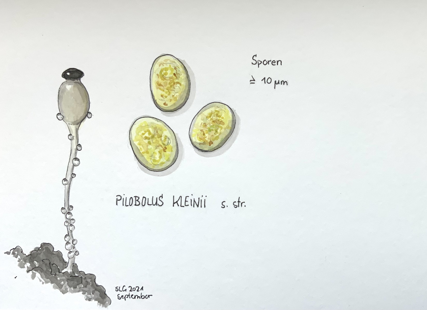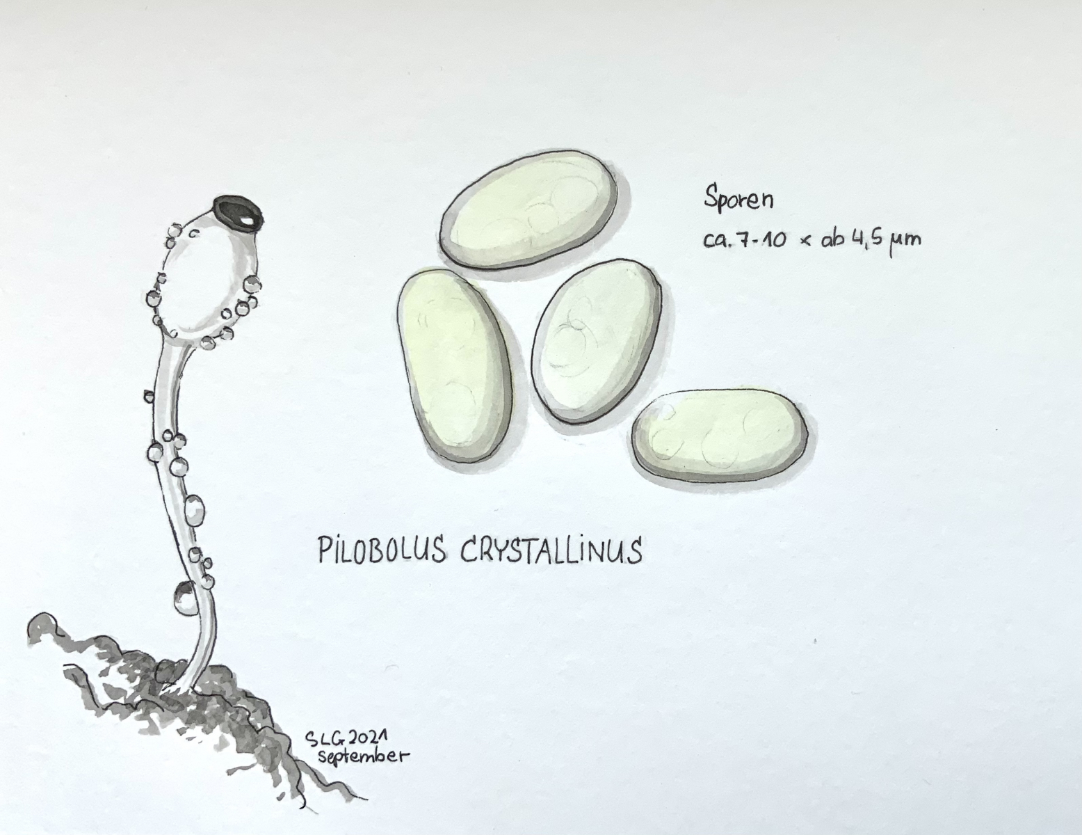 Ebenfalls würde ich gerne einen Pilobolus zeichnen. Da fehlen mir wiederum die Sporen und die Makrofotos. Und es muss natürlich zusammen passen, das Makro-Foto und die Sporen. Ob P. kleinii, umbonatus, crystalinus oder oedipus ist erst einmal egal, hübsch sind sie alle.