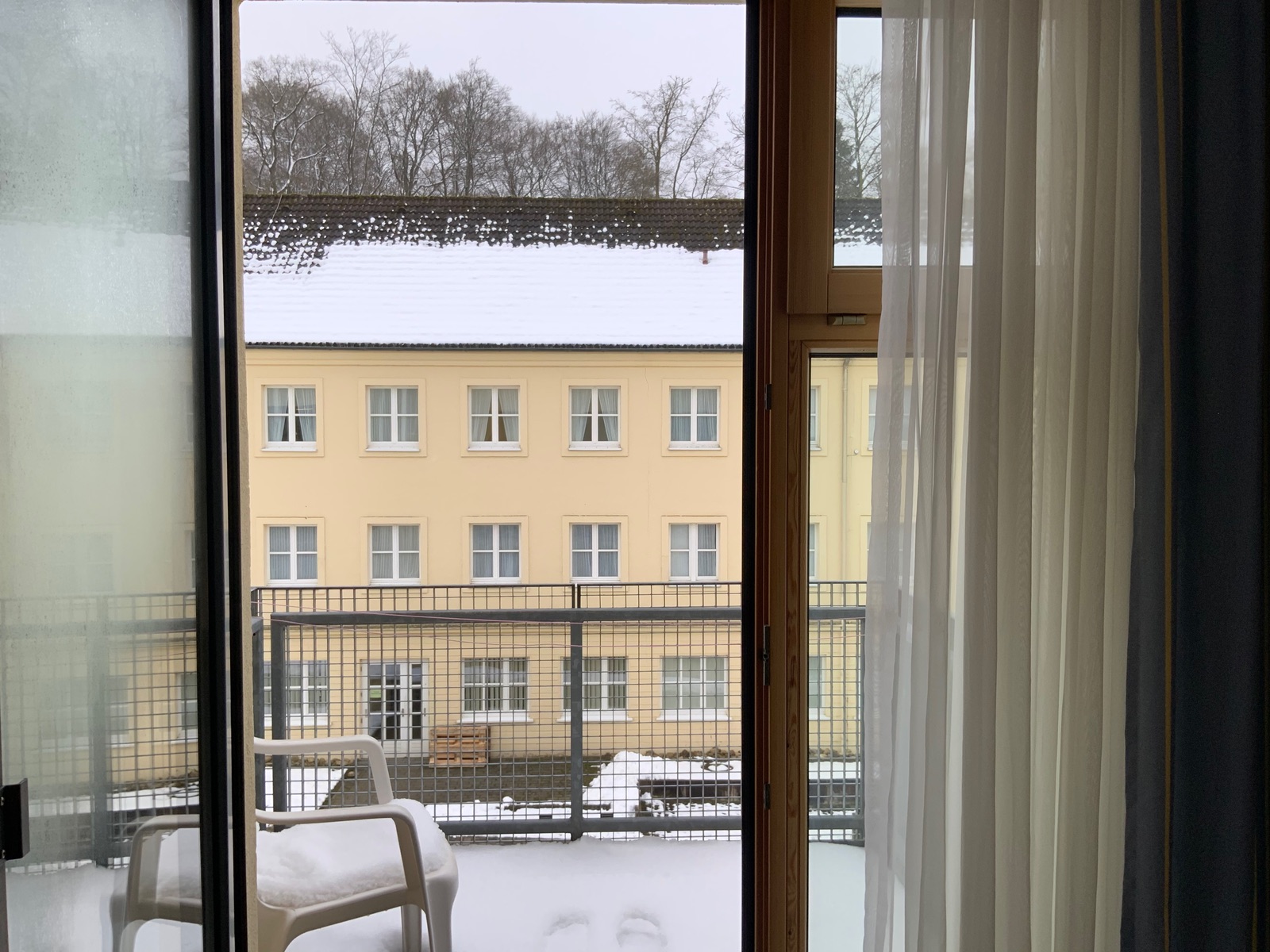 Ja, der Ausblick aus vielen Zimmern geht direkt in den Wald oder in den Kurpark, meiner leider direkt auf Haus D (die Bäume lugen zum Glück noch dahinter hervor). Aber im Ruheraum (da ist das Bild entstanden) liegt man fast im Wald. :)
