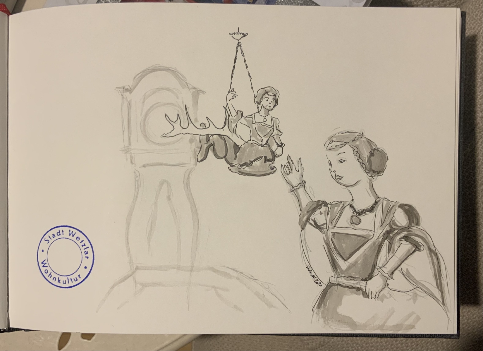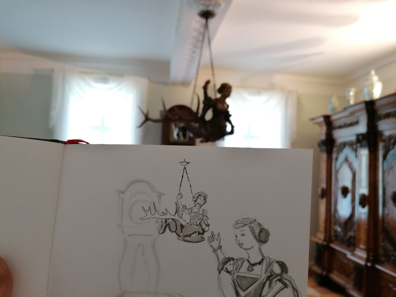 Heute mal wieder etwas völlig unpilzliches... ich war wieder unterwegs mit den Urban Sketchers Mittelhessen. Diesmal in einem Museum, das ich als Kind schon kannte, dem Palais Papius. Allerdings sah es da schon noch etwas anders auch, besonders die Privaträume der Dame, die diese Sammlung zusammengetragen hatte.