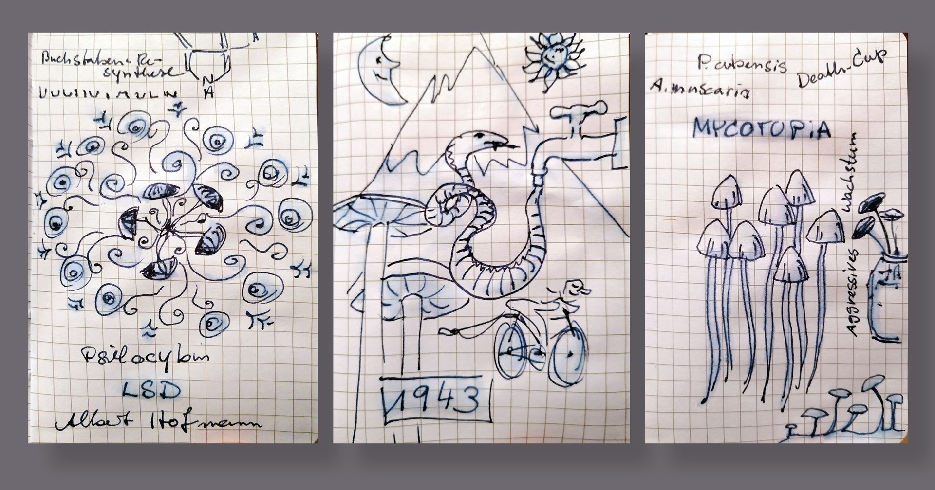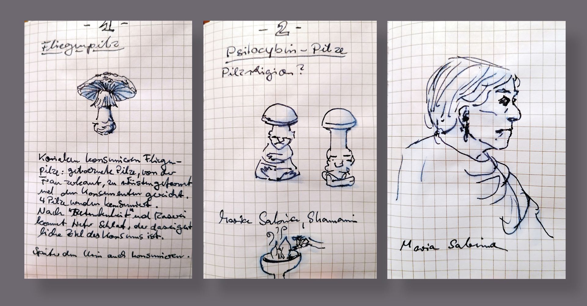 Heute mal was Pilziges... Während Peters interessantem Vortrag gestern Abend habe ich mir ein paar Notizen gemacht und auch ein paar Skizzen, einfach ins Notizbüchlein, welche ich Euch hier zeigen möchte.